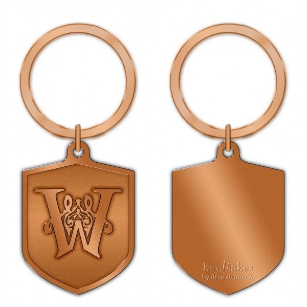 Letter W alphabet Keyring. Beautifully designed by creating a bespoke font the deva AUSTRALIA Alphabet-Initial Keyring Collection is available in 2 finishes - Black Enamel background with contrasting Copper/Rose Gold plating and a complete Antique Copper plating - for that rich and rustic look. These Alphabet- Initial Letter Keyrings have high quality finishes and elegant presentation, which is a hallmark of all deva Australia products.