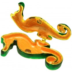 Hand sculpted & enamelled this high quality, jewelled Seahorse trinket box is a part of deva Australia’s large range of ornate animal figurines, which are hand cast in metal to create exquisite trinket boxes, inspired by Fabergé style trinket boxes. Each deva Australia collectable trinket box, is skilfully sculpted to bring out life like characteristics. Hand painted fine enamels that mimic natures exquisite and vibrant palette; artistically hand-set Austrian Crystal embellishments and 18 K gold or silver plated trims, finish each piece to make it a treasured collectible or keepsake.