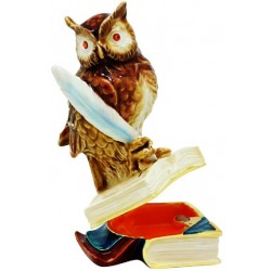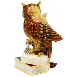 The Owl on Books Trinket Box has a hinged opening and a secure magnetic closure. Great for storing small mementos; special messages; fine jewellery charms & nic nacs. The Owl on Books trinket box would be great to display as a bejewelled trinket figurine in a bird lovers home. Skillfully crafted,this trinket box is a tribute to this delightful bird.