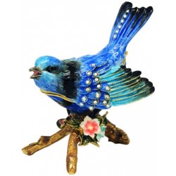 Hand sculpted & enamelled this high quality, jewelled Splendid Fairy Wren trinket box is a part of deva Australia’s large range of ornate bird figurines, which are hand cast in metal to create exquisite trinket boxes. Inspired by Fabergé style trinket boxes. Each deva Australia collectable trinket box, is skilfully sculpted to bring out life like characteristics. Hand painted fine enamels that mimic natures exquisite and vibrant palette; artistically hand-set Austrian Crystal embellishments and 18 K gold or silver plated trims, finish each piece to make it a treasured collectible or keepsake. The Splendid Fairy Wren is part of our Australiana or native Australian animal collection.