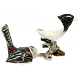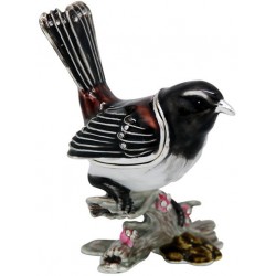 Hand sculpted & enamelled this high quality, jewelled Willy Wagtail trinket box is a part of deva Australia’s large range of ornate bird figurines, which are hand cast in metal to create exquisite trinket boxes. Inspired by Fabergé style trinket boxes. Each deva Australia collectable trinket box, is skilfully sculpted to bring out life like characteristics. Hand painted fine enamels that mimic natures exquisite and vibrant palette; artistically hand-set Austrian Crystal embellishments and 18 K gold or silver plated trims, finish each piece to make it a treasured collectible or keepsake. The Willy Wagtail is part of our Australiana or native Australian animal collection.