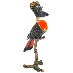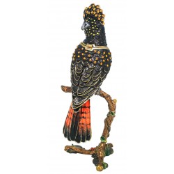 Hand sculpted & enamelled this high quality, jewelled Black Cockatoo - Red Tail Trinket box is a part of deva Australia’s large range of ornate animal figurines, which are hand cast in metal to create exquisite trinket boxes, inspired by Fabergé style trinket boxes. Each deva Australia collectable trinket box, is skilfully sculpted to bring out life like characteristics. Hand painted fine enamels that mimic natures exquisite and vibrant palette; artistically hand-set Austrian Crystal embellishments and 18 K gold or silver plated trims, finish each piece to make it a treasured collectible or keepsake. The Black Cockatoo - Red Tail trinket box is part of our range of Australiana or native australian animals series.