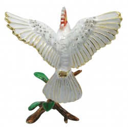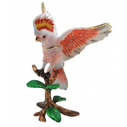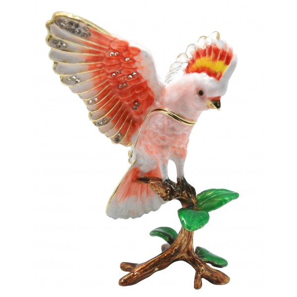 Hand lsculpted & enamelled this high quality, jewelled Australian Major Mitchell Cockatoo trinket box is a part of deva Australia’s large range of ornate bird figurines, which are hand cast in metal to create exquisite trinket boxes. Inspired by Fabergé style trinket boxes. Each deva Australia collectable trinket box, is skilfully sculpted to bring out life like characteristics. Hand painted fine enamels that mimic natures exquisite and vibrant palette; artistically hand-set Austrian Crystal embellishments and 18 K gold or silver plated trims, finish each piece to make it a treasured collectible or keepsake. The Major Mitchell Cockatoo is part of our Australiana or native Australian animal collection.
