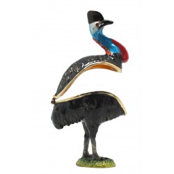 Hand sculpted & enamelled this high quality, jewelled Cassowary Trinket box is a part of deva Australia’s large range of ornate bird figurines, which are hand cast in metal to create exquisite trinket boxes, inspired by Fabergé style trinket boxes. Each deva Australia collectable trinket box, is skilfully sculpted to bring out life like characteristics. Hand painted fine enamels that mimic natures exquisite and vibrant palette; artistically hand-set Austrian Crystal embellishments and 18 K gold or silver plated trims, finish each piece to make it a treasured collectible or keepsake. The Cassowary trinket box is part of our range of Australiana or native australian animals series.