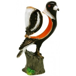 Hand sculpted & enamelled this high quality Magpie trinket box is a part of deva Australia’s large range of ornate bird figurines, which are hand cast in metal to create exquisite trinket boxes, inspired by Fabergé style trinket boxes. Each deva Australia collectable trinket box, is skilfully sculpted to bring out life like characteristics. Hand painted fine enamels that mimic natures exquisite and vibrant palette, artistically hand set, Austrian Crystal embellishments and 18 K gold or silver trims, finish each piece, to make it a treasured collectable or keepsake. The Magpie trinket box is part of our range of Australiana or native australian animals series.