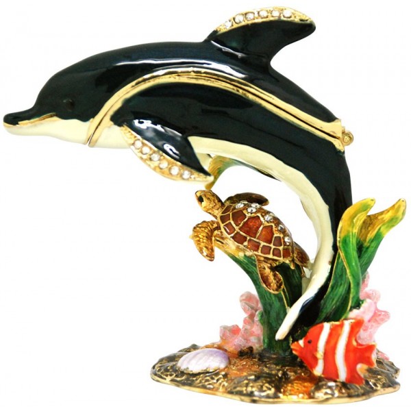 Reef Dolphin Trinket Box|Collectible, jewelled trinket box inspired by Fabergé style trinket boxes. High quality is the hallmark of deva Australia's large range of collectable trinket boxes