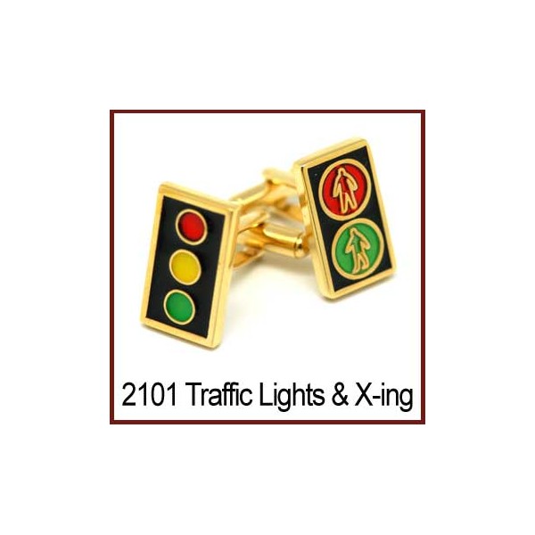 Pedestrian & Traffic Lights - Gold Novelty Cufflinks