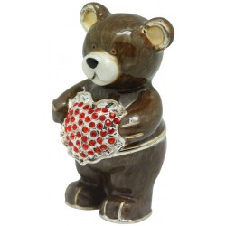 Hand sculpted & enamelled this high quality, jewelled Brown Teddy Bear trinket box is a part of deva Australia’s large range of ornate figurines, which are hand cast in metal to create exquisite trinket boxes. Inspired by Fabergé style trinket boxes. Each deva Australia collectable trinket box, is skilfully sculpted to bring out life like characteristics. Application of fine enamels in a vibrant palette; artistically hand-set Austrian Crystal embellishments and 18 K gold or silver plated trims, finish each piece to make it a treasured collectible or keepsake.