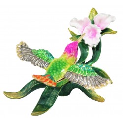 The Hummingbird Green Trinket Box has a hinged opening and a secure magnetic closure. Great for storing small mementos; special messages; fine jewellery charms & nic nacs. The Hummingbird Green trinket box would be great to display as a bejewelled trinket figurine. The Hummingbird Green trinket box makes a fine collectible or gift for bird lovers - or if the Hummingbird Green symbolism resonates with you.