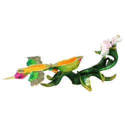 Hand sculpted & enamelled this high quality, jewelled Hummingbird Green trinket box is a part of deva Australia’s large range of ornate bird figurines, which are hand cast in metal to create exquisite trinket boxes, inspired by Fabergé style trinket boxes. Each deva Australia collectable trinket box, is skilfully sculpted to bring out life like characteristics. Hand painted fine enamels that mimic natures exquisite and vibrant palette; artistically hand-set Austrian Crystal embellishments and 18 K gold or silver plated trims, finish each piece to make it a treasured collectible or keepsake.