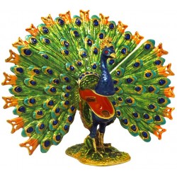 The Fan Tailed Peacock Trinket Box has a hinged opening and a secure magnetic closure. Great for storing small mementos; special messages; fine jewellery charms & nic nacs. The Fan Tailed Peacock Trinket box would be great to display as a bejewelled trinket figurine. The Fan Tailed Peacock Trinket box makes a fine collectible or gift for bird lovers - or if the symbolic Fan Tailed Peacock energy resonates with you.