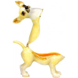 Hand sculpted & enamelled this high quality, jewelled Chihuahua trinket box is a part of deva Australia’s large range of ornate dog figurines, which are hand cast in metal to create exquisite trinket boxes, inspired by Fabergé style trinket boxes. Each deva Australia collectable trinket box, is skilfully sculpted to bring out life like characteristics. Hand painted fine enamels that mimic natures exquisite and vibrant palette; artistically hand-set Austrian Crystal embellishments and 18 K gold or silver plated trims, finish each piece to make it a treasured collectible or keepsake.