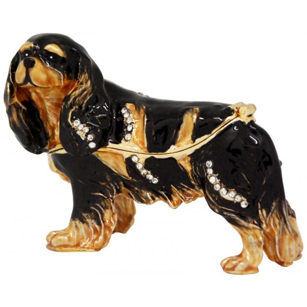 The King Charles Trinket Box has a hinged opening and a secure magnetic closure. Great for storing small mementos; special messages; fine jewellery charms & nic nacs. The King Charles trinket box would be great to display as a bejewelled trinket figurine. The King Charles trinket box makes a fine collectible or gift for dog lovers, especially if you have a King Charles pooch! - or if the symbolic King Charles energy resonates with you.