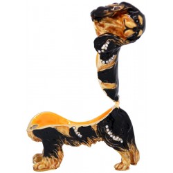 Hand sculpted & enamelled this high quality, jewelled King Charles trinket box is a part of deva Australia’s large range of ornate dog figurines, which are hand cast in metal to create exquisite trinket boxes, inspired by Fabergé style trinket boxes. Each deva Australia collectable trinket box, is skilfully sculpted to bring out life like characteristics. Hand painted fine enamels that mimic natures exquisite and vibrant palette; artistically hand-set Austrian Crystal embellishments and 18 K gold or silver plated trims, finish each piece to make it a treasured collectible or keepsake.