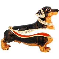 The Dachshund Trinket Box has a hinged opening and a secure magnetic closure. Great for storing small mementos; special messages; fine jewellery charms & nic nacs. The Dachshund trinket box would be great to display as a bejewelled trinket figurine. The Dachshund trinket box makes a fine collectible or gift for dog lovers, especially if you have a Dachshund pooch! - or if the symbolic Dachshund energy resonates with you.