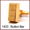 High quality ionic gold plated novelty cufflinks in the shape of a gold bullion bar. Great for GOOD LUCK or a perfect adornment for the Jeweller!! Presented in a black hinged snake-skin leatherette jewellery / cufflinks box.