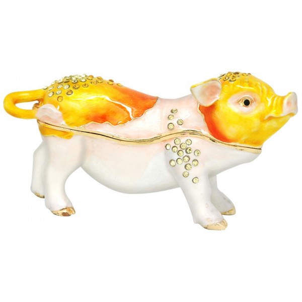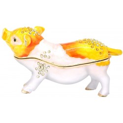 The Pig Trinket Box has a hinged opening and a secure magnetic closure. Great for storing small mementos; special messages; fine jewellery charms & nic nacs. The Pig trinket box would be great to display as a bejewelled trinket figurine. Skillfully crafted this Pig Trinket box, is undeniably handsome.