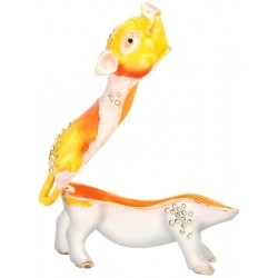 Hand sculpted & enamelled this high quality, jewelled Pig trinket box is a part of deva Australia’s large range of ornate animal figurines, which are hand cast in metal to create exquisite trinket boxes, inspired by Fabergé style. Each deva Australia collectible trinket box, is skilfully sculpted to bring out life like characteristics. Hand painted fine enamels that mimic natures exquisite and vibrant palette; artistically hand-set Austrian Crystal embellishments and 18 K gold or silver plated trims, finish each piece to make it a treasured collectible or keepsake.