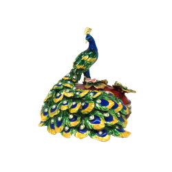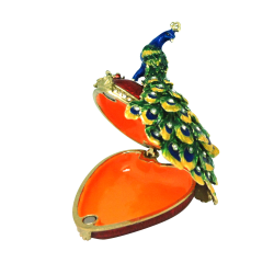 Peacock on Heart Box Red Trinket Box|Collectible, jewelled trinket box inspired by Fabergé style trinket boxes. High quality is the hallmark of deva Australia's large range of collectable trinket boxes
