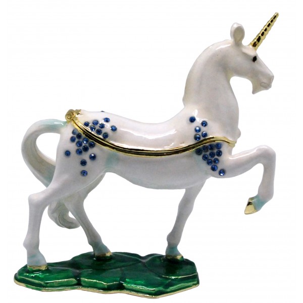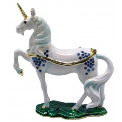 The Unicorn Trinket Box has a hinged opening and a secure magnetic closure. Great for storing small mementos; special messages; fine jewellery charms & nic nacs. The Unicorn trinket box would be great to display as a bejewelled trinket figurine. The Unicorn trinket box makes a fine collectible or gift for animal lovers - or if the symbolic Horse energy resonates with you.