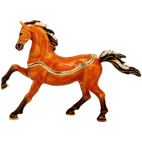 Hand sculpted & enamelled this high quality, jewelled Arabian Horse trinket box is a part of deva Australia’s large range of ornate animal figurines, which are hand cast in metal to create exquisite trinket boxes, inspired by Fabergé style trinket boxes. Each deva Australia collectable trinket box, is skilfully sculpted to bring out life like characteristics. Hand painted fine enamels that mimic natures exquisite and vibrant palette; artistically hand-set Austrian Crystal embellishments and 18 K gold or silver plated trims, finish each piece to make it a treasured collectible or keepsake.