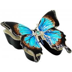 Hand sculpted & enamelled this high quality, jewelled trinket box, is a part of deva Australia’s large range of ornate animal figurines, which are hand cast in metal to create exquisite trinket boxes, inspired by Fabergé style trinket boxes. Each deva Australia collectable trinket box, is skilfully sculpted to bring out life like characteristics. Hand painted fine enamels that mimic natures exquisite and vibrant palette, artistically hand-set Austrian Crystal embellishments and 18 K gold or silver plated trims, finish each piece to make it a treasured collectible or keepsake. The Ulysses Butterfly trinket box is part of our range of Australiana or native Australian animals series. It is one of Australia's most distinctive and unique butterfly species. It's iridescent blue colouring is very vibrant and attractive.