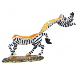 Hand sculpted & enamelled this high quality, jewelled Zebra Running trinket box is a part of deva Australia’s large range of ornate animal figurines, which are hand cast in metal to create exquisite trinket boxes, inspired by Fabergé style. Each deva Australia collectible trinket box, is skilfully sculpted to bring out life like characteristics. Hand painted fine enamels that mimic natures exquisite and vibrant palette; artistically hand-set Austrian Crystal embellishments and 18 K gold or silver plated trims, finish each piece to make it a treasured collectible or keepsake.