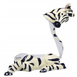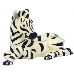 The Zebra Lying Trinket Box has a hinged opening and a secure magnetic closure. Great for storing small mementos; special messages; fine jewellery charms & nic nacs. The Zebra Lying trinket box would be great to display as a bejewelled trinket figurine, in the home or office of someone who loves animals in the wild, or someone who identifies with the fascinating symbolism of the Zebra.
