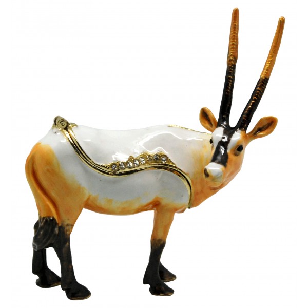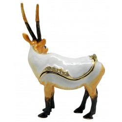 Hand sculpted & enameled this high quality, jeweled Antelope trinket box is a part of deva Australia’s large range of ornate animal figurines, which are hand cast in metal to create exquisite trinket boxes, inspired by Fabergé style trinket boxes. Each deva Australia collectable trinket box, is skilfully sculpted to bring out life like characteristics. Hand painted fine enamels that mimic natures exquisite and vibrant palette; artistically hand-set Austrian Crystal embellishments and 18 K gold or silver plated trims, finish each piece to make it a treasured collectible or keepsake.