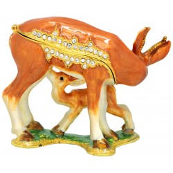 The Doe & Fawn Trinket Box has a hinged opening and a secure magnetic closure. Great for storing small mementos; special messages; fine jewellery charms & nic nacs. The Doe & Fawn trinket box would be great to display as a bejewelled trinket figurine. The Doe & Fawn trinket box makes a fine collectible or gift for animal lovers of wild animals - or if the symbolic Doe & Fawn energy resonates with you.