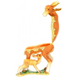 Hand sculpted & enamelled this high quality, jewelled Doe & Fawn trinket box is a part of deva Australia’s large range of ornate animal figurines, which are hand cast in metal to create exquisite trinket boxes. Inspired by Fabergé style trinket boxes. Each deva Australia collectiale trinket box, is skilfully sculpted to bring out life like characteristics. Application of fine enamels that mimic natures exquisite and vibrant palette; artistically hand-set Austrian Crystal embellishments and 18 K gold or silver plated trims, finish each piece to make it a treasured collectible or keepsake.