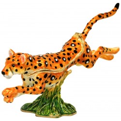 The Running Leopard Trinket Box has a hinged opening and a secure magnetic closure. Great for storing small mementos; special messages; fine jewellery charms & nic nacs. The Running Leopard Trinket box would be great to display as a bejewelled trinket figurine. The Running Leopard Trinket box makes a fine collectible or gift for animal lovers - or if the symbolic Running Leopard energy resonates with you.