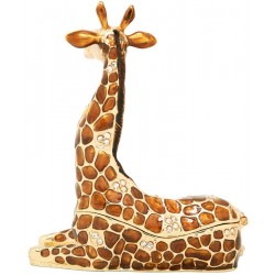 Hand sculpted & enamelled this high quality, jewelled Giraffe Sitting trinket box is a part of deva Australia’s large range of ornate animal figurines, which are hand cast in metal to create exquisite trinket boxes, inspired by Fabergé style trinket boxes. Each deva Australia collectable trinket box, is skilfully sculpted to bring out life like characteristics. Hand painted fine enamels that mimic natures exquisite and vibrant palette; artistically hand-set Austrian Crystal embellishments and 18 K gold or silver plated trims, finish each piece to make it a treasured collectible or keepsake.