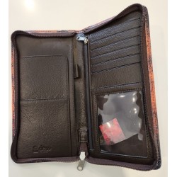 This Designer Travel Wallet is meticulously crafted in Genuine Leather. It is thoughfully designed with multiple internal compartments/pockets of varying sizes to take care of all your travel documentation. It has a zip around closure. It measures approx. 22 (w) x 13.5 (h) x 4(d) cms.