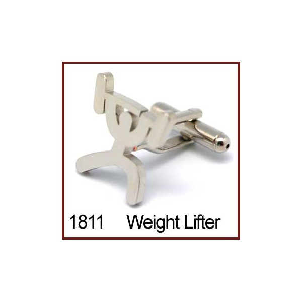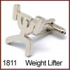 Weight Lifter, Novelty Cufflinks, High quality, sport themed, rhodium plated novelty cufflinks. Presented in a black hinged snake-skin leatherette jewellery / cufflinks box.