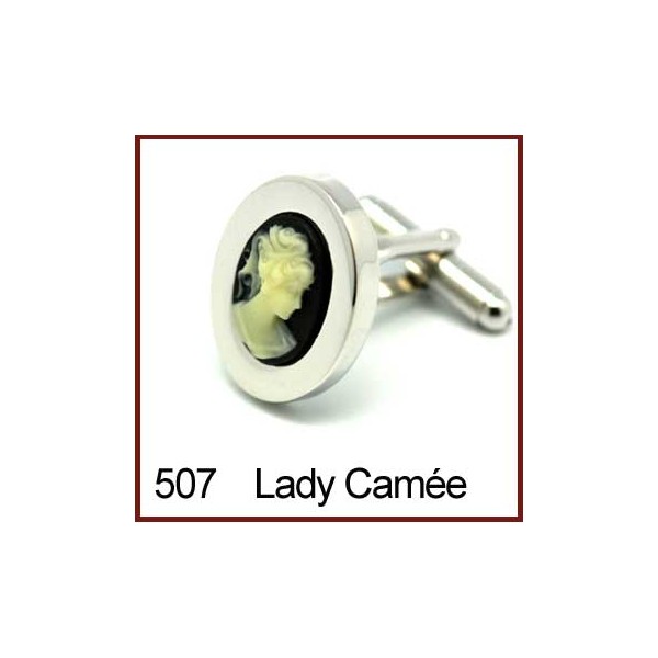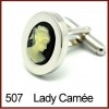 High quality rhodium plated cufflinks with semi-precious Cameo. Presented in a black leatherette jewellery / cufflinks box.