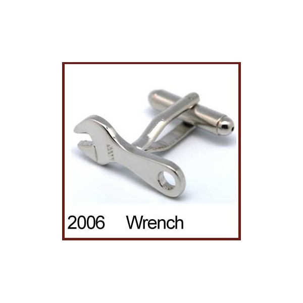 Wrench Novelty Cufflinks - High quality rhodium plated novelty cufflinks. Presented in a black hinged snake-skin leatherette jewellery / cufflinks box. A great gift for people who are handy with their tools.