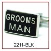 High quality black enamel and epoxy dome rhodium plated GRROMS MAN wedding cufflinks. Presented in a black hinged snake-skin leatherette jewellery / cufflinks box.
