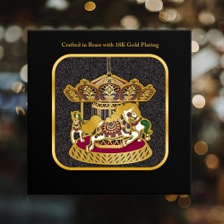 These stunning & creative Christmas ornaments, are made in solid brass, etched, cut and decorated with remarkable detail, using a rich colour palette of deep burgundy, sapphire blue & emerald green. Each element is thoughtfully designed and skillfully put together by hand to bring a Christmas scene to life, in 3D. Finished in 18K gold plating, these Christmas ornaments are differentiated and make heirloom quality collectable keepsakes, or gifts for generations to enjoy.
