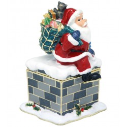 The Christmas Santa Down Chimney trinket box has a hinged opening and a secure magnetic closure. Great for storing small mementos; special messages; fine jewellery charms & nic nacs. The Christmas Santa Down Chimney trinket box would be great to display as a bejewelled trinket figurine. The Christmas Santa Down Chimney trinket box, is a great addition to the Christmas figurines/memrobilia collections of a collector. It also makes a fine collectible or heirloom gift, to mark a special Christmas of a loved one.