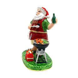 The Santa's BBQ Trinket Box has a hinged opening and a secure magnetic closure. Great for storing small mementos; special messages; fine jewellery charms & nic nacs. The Santa's BBQ trinket box would be great to display as a bejeweled trinket figurine. The Santa's BBQ trinket box makes a fine collectable.