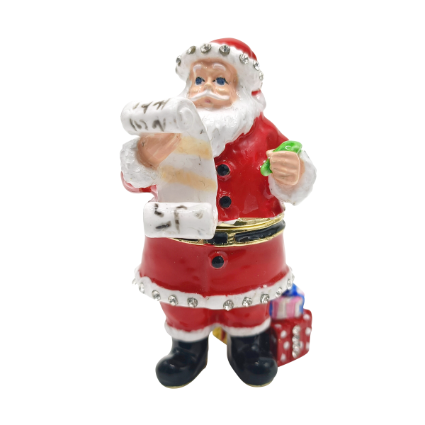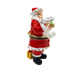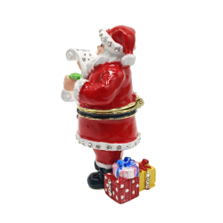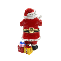 The Santa's List Trinket Box has a hinged opening and a secure magnetic closure. Great for storing small mementos; special messages; fine jewellery charms & nic nacs. The Santa's List trinket box would be great to display as a bejeweled trinket figurine. The Santa's List trinket box makes a fine collectable.