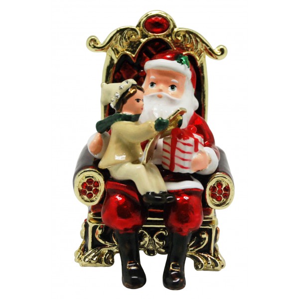 The Xmas / Christmas Santa With Kid trinket box has a hinged opening and a secure magnetic closure. Great for storing small mementos; special messages; fine jewellery charms & nic nacs. The Xmas / Christmas Santa With Kid trinket box would be great to display as a bejewelled trinket figurine. The Xmas / Christmas Santa With Kid trinket box, is a great addition to the Christmas figurines/memrobilia collections of a collector. It also makes a fine collectible or heirloom gift, to mark a special Christmas.