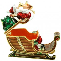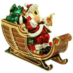 The Christmas Santa Sleigh trinket box has a hinged opening and a secure magnetic closure. Great for storing small mementos; special messages; fine jewellery charms & nic nacs. The Christmas Santa Sleigh trinket box would be great to display as a bejewelled trinket figurine. The Christmas Santa Sleigh trinket box, is a great addition to the Christmas figurines/memrobilia collections of a collector. It also makes a fine collectible or heirloom gift, to mark a special Christmas of a loved one.
