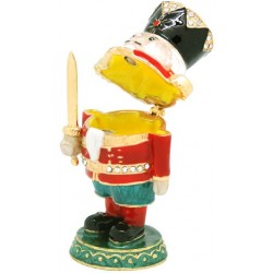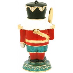 The Christmas Nutcracker trinket box has a hinged opening and a secure magnetic closure. Great for storing small mementos; special messages; fine jewellery charms & nic nacs. The Christmas Nutcracker trinket box would be great to display as a bejewelled trinket figurine. The Christmas Nutcracker trinket box, is a great addition to the Christmas figurines/memrobilia collections of a collector. It also makes a fine collectible or heirloom gift, to mark a special Christmas of a loved one.